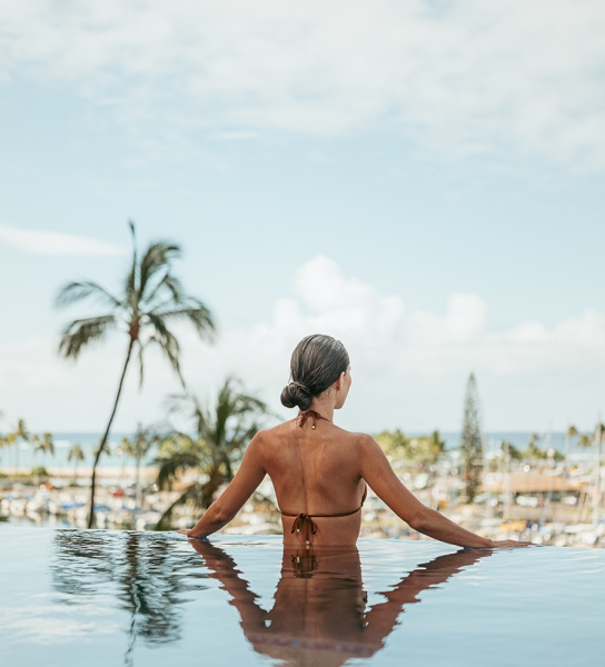 프린스 와이키키 데크에서는 아름다운 일몰과 시원한 음료, 즐거운 시간이 언제나 함께합니다. 일상의 번잡함을 잠시 잊고, 프린스 와이키키의 아이코닉, 인피니티 풀, 해수풀, 온수풀 세 곳의 오아시스를 누비며 몸과 마음에 편안한 안식을 찾아보세요.
